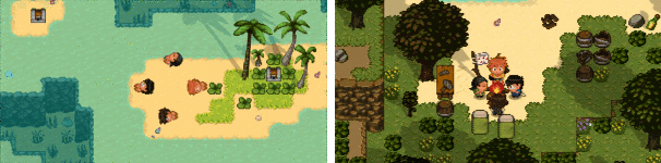 四位主角互相配合,透过制作、建筑与耕种让自己变强并存活下去。